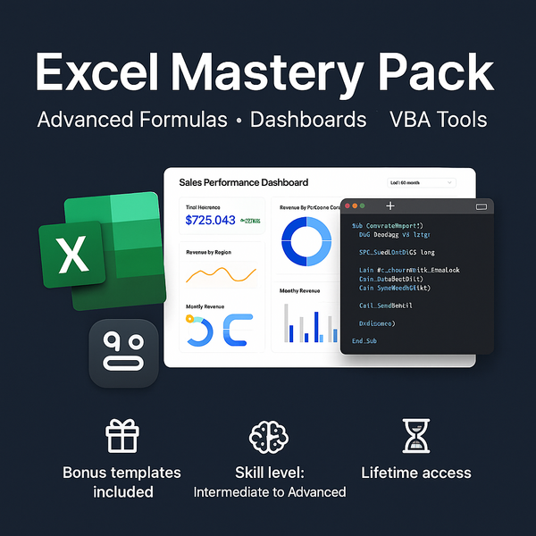 Excel Mastery Pack – Advanced Formulas, Dashboards & VBA Automation